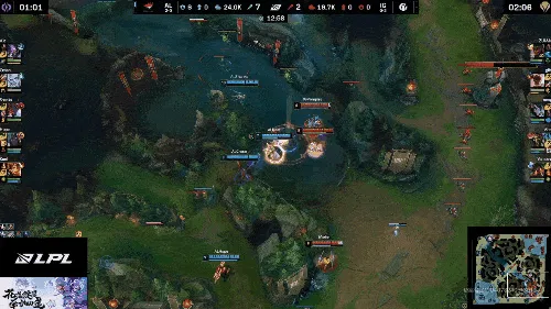 12分钟,双方在小龙坑爆发团战。 AL杀死了盲僧,凯尔和蕾欧娜血光一闪逃走了。